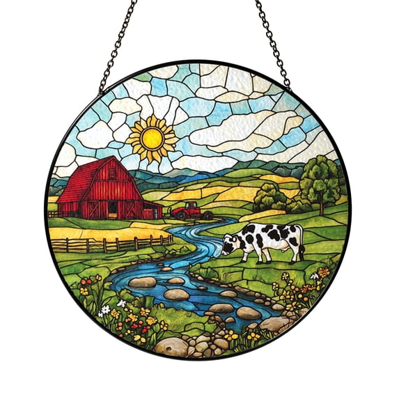 Cow and Barn Stained Glass Sun Catcher, Farm Scene Window Decor, Rustic ...