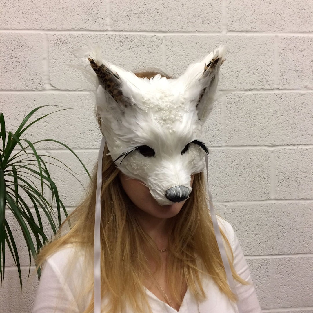 Luxury White Feather Fox Mask, Unisex Adult Fox Mask, Woodland Animal ...