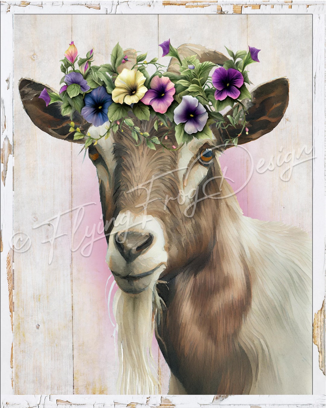 Vintage Rustic Goat Flower Crown Wreath Pansies Flowers Uv-coated ...