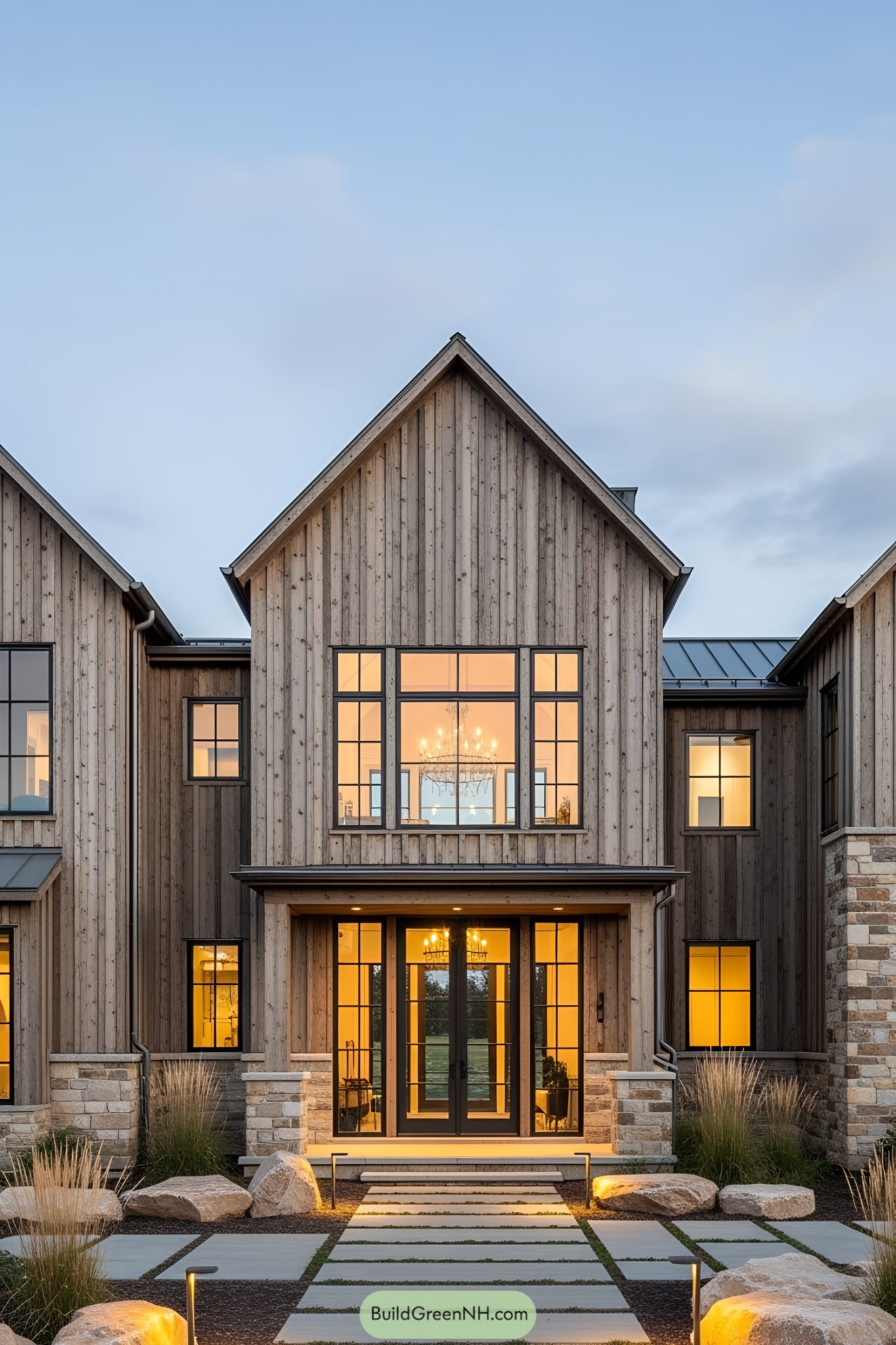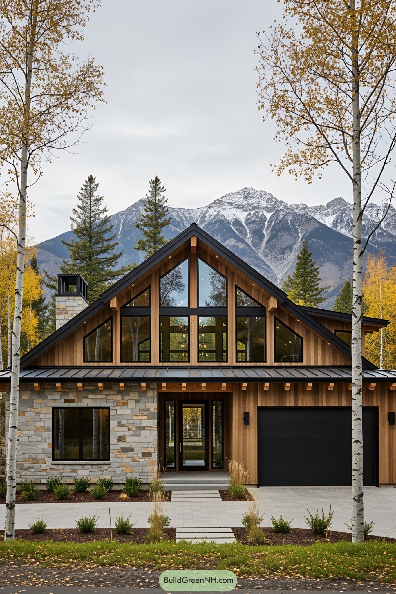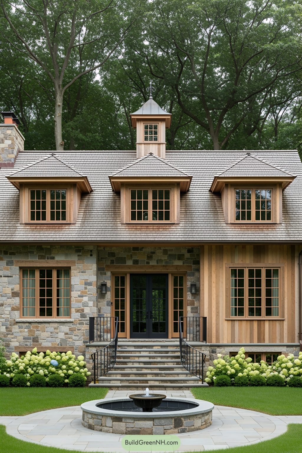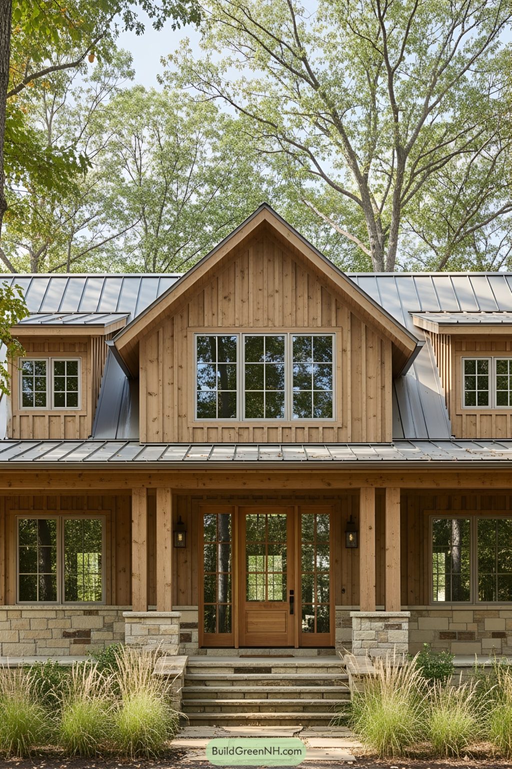Modern rustic cottage house with stone facade wood stain trim large ...