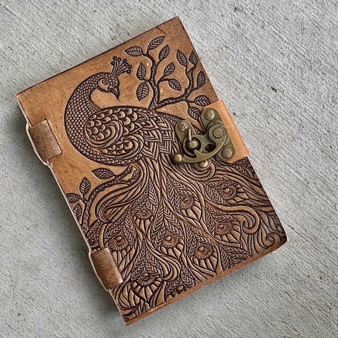 Rustic Leather Journal Lovely Peacock Handmade / Recycled | Etsy