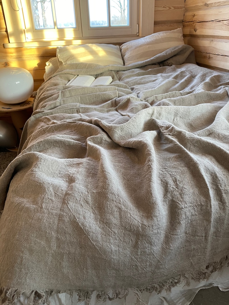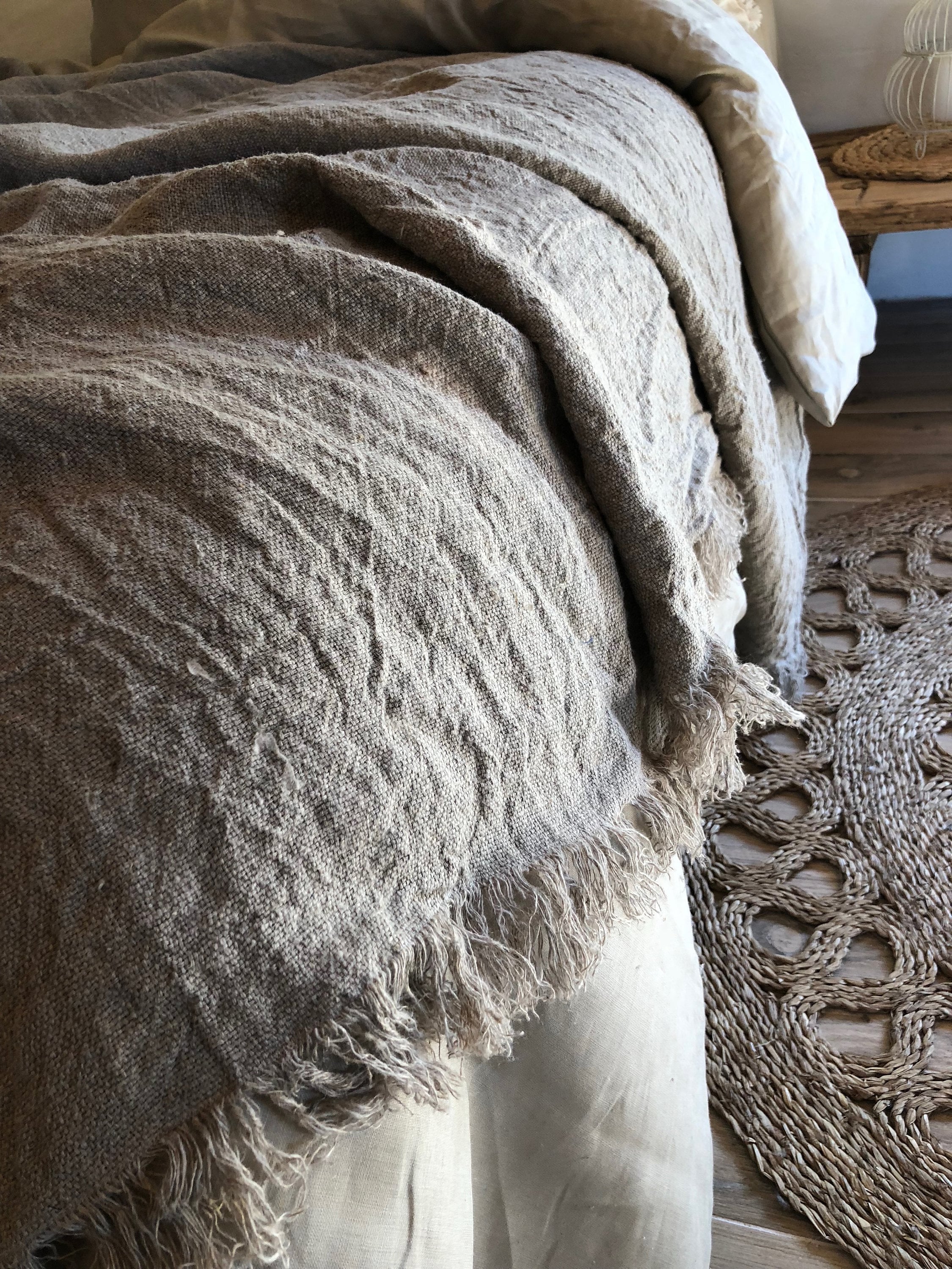 Linen Bed Cover Rustic Linen Rustic Blanket With Fringes - Etsy Canada