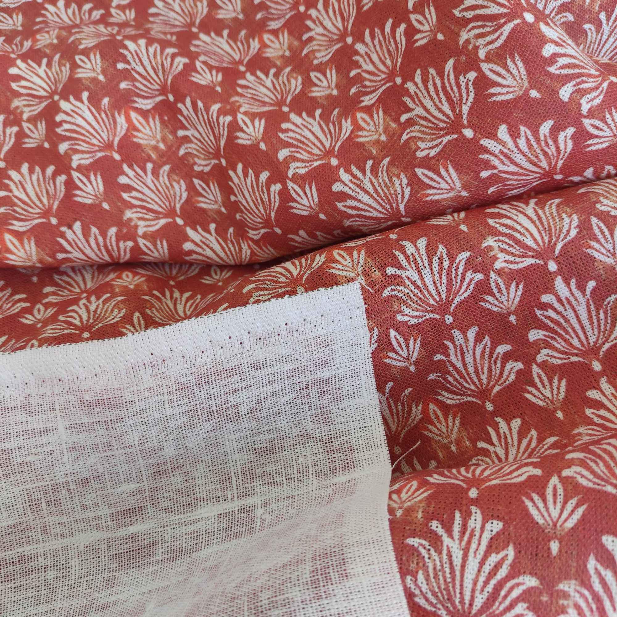 100% LINEN Fabric Rustic Block Print, Oatmeal Natur Linen With Brick ...
