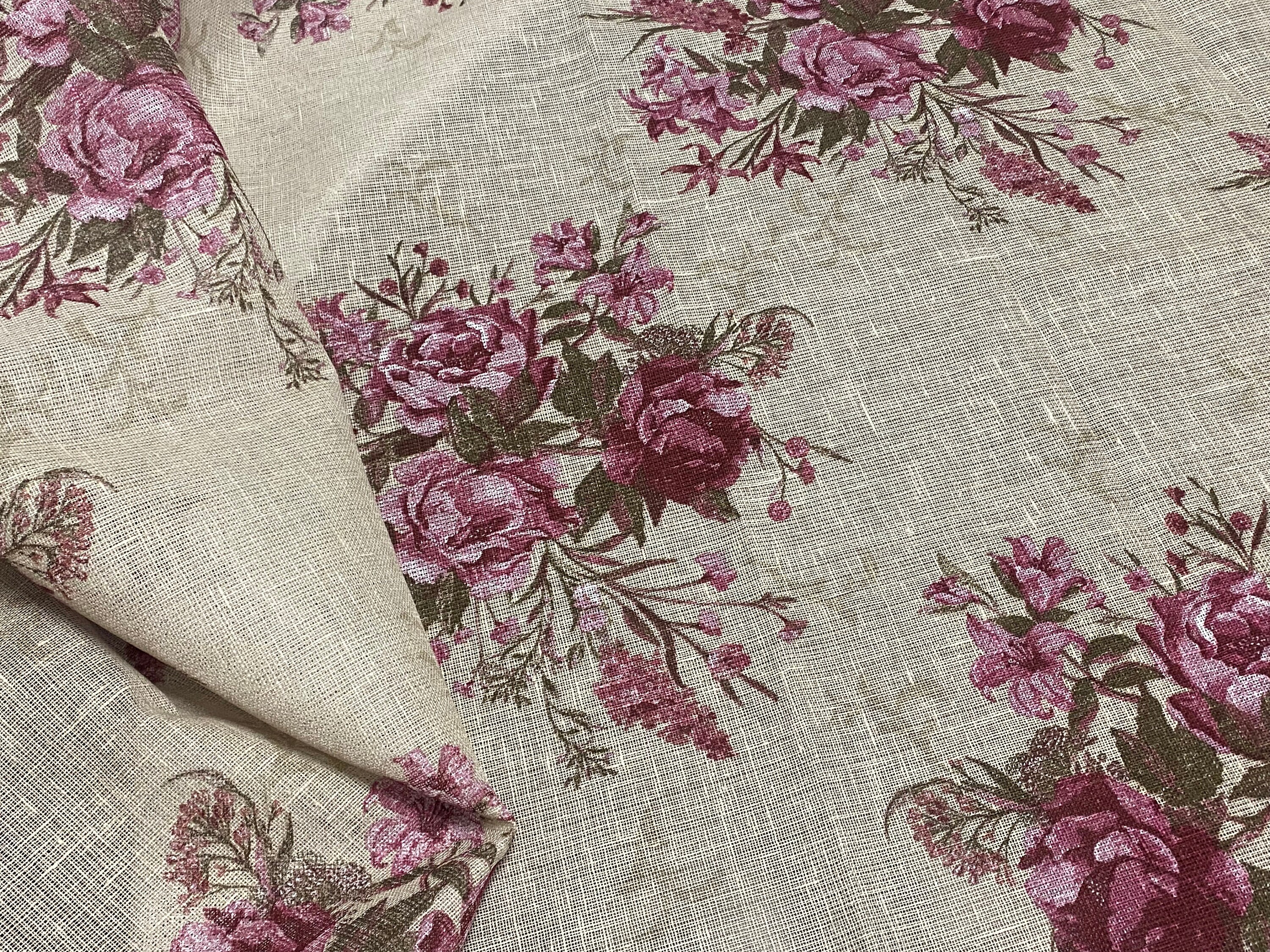 Rustic Natural Linen Fabric Floral Print Linen Fabric Shabby - Etsy