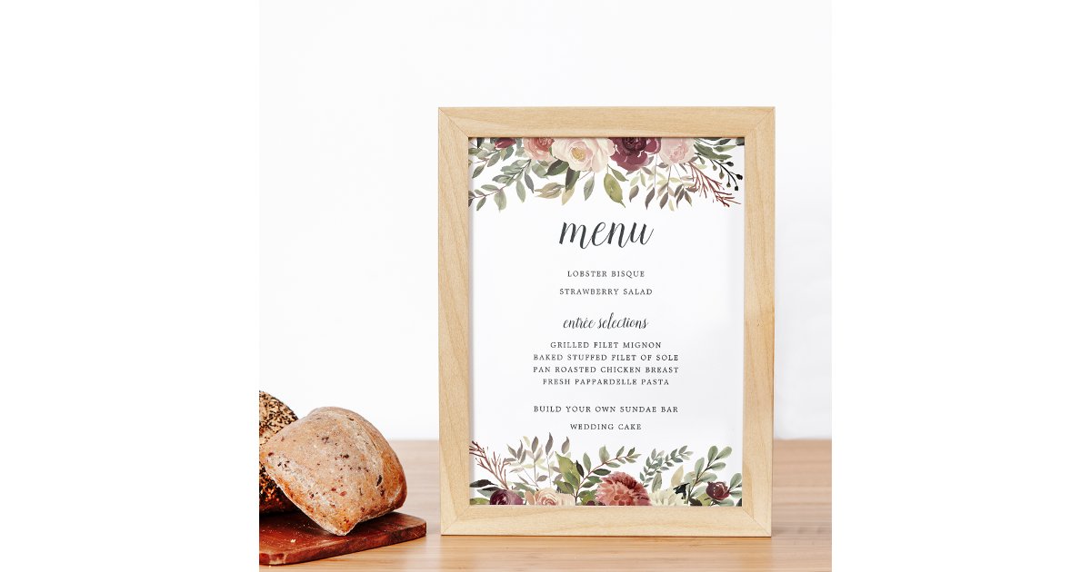 Rustic Bloom Menu Sign | Zazzle