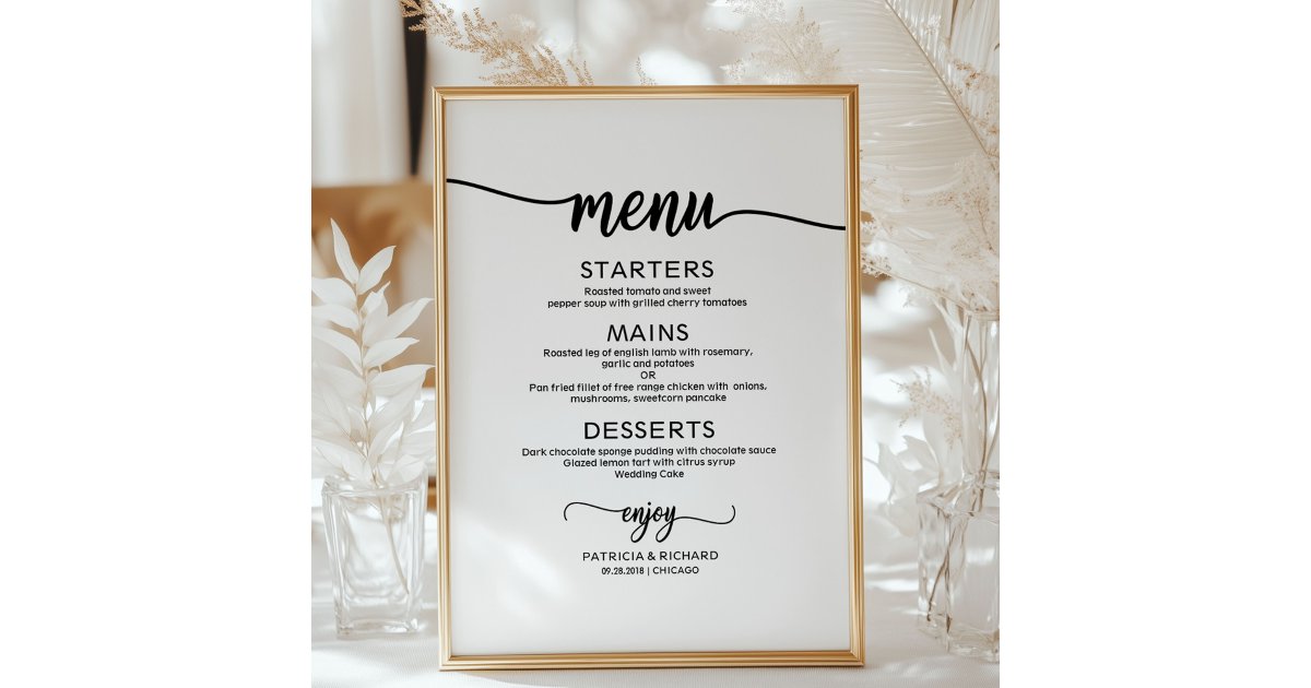 Wedding Menu Sign Rustic Chic Calligraphy | Zazzle
