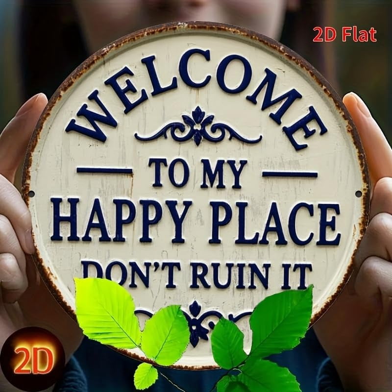 8" Welcome to My Happy Place Don't Ruin It Metal Sign, Rustic Round ...