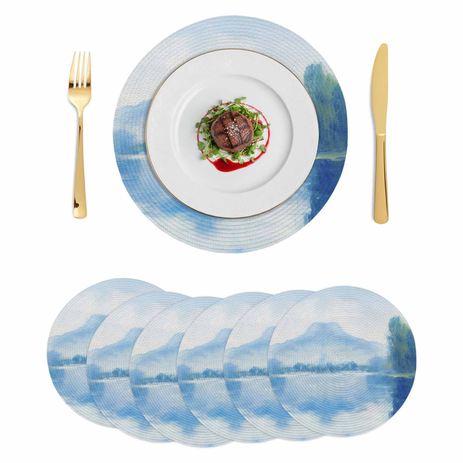 Blue Ombre Round 15 Inch Placemats Set of 6, Watercolor Landscape ...