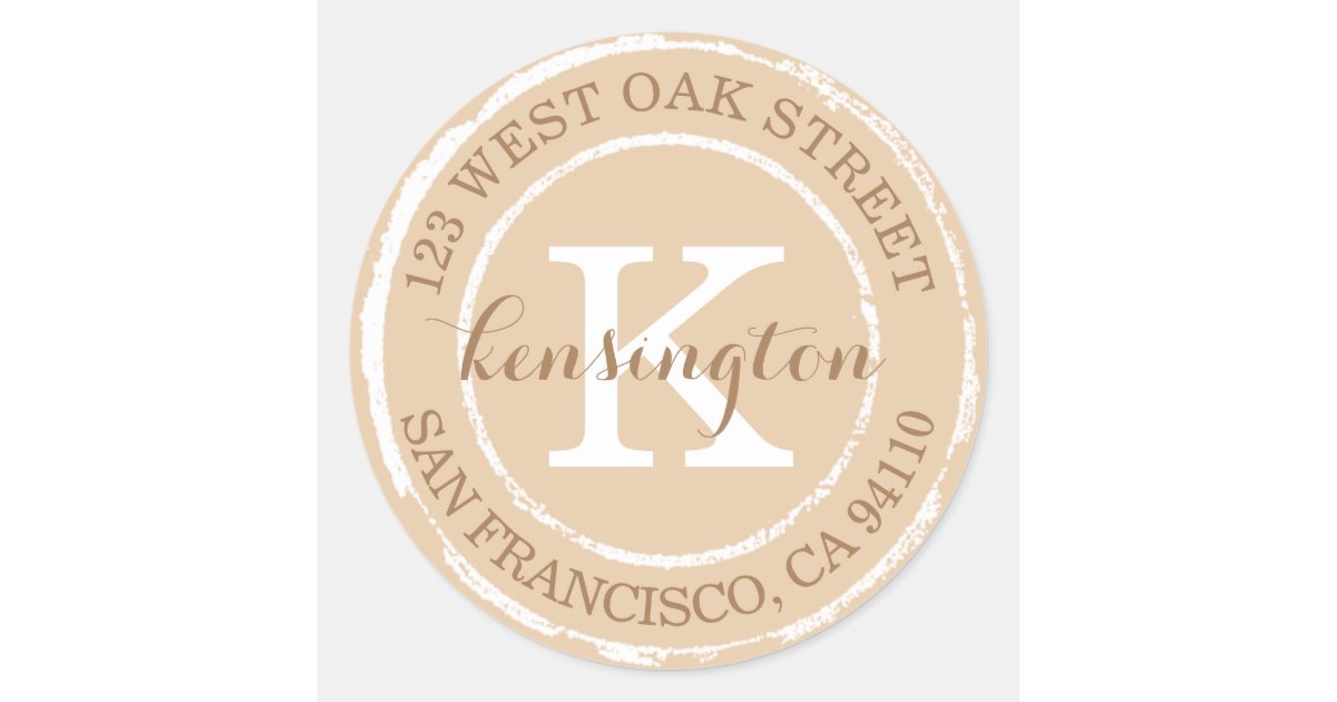 Vintage Rustic Monogram | Round Address Label | Zazzle