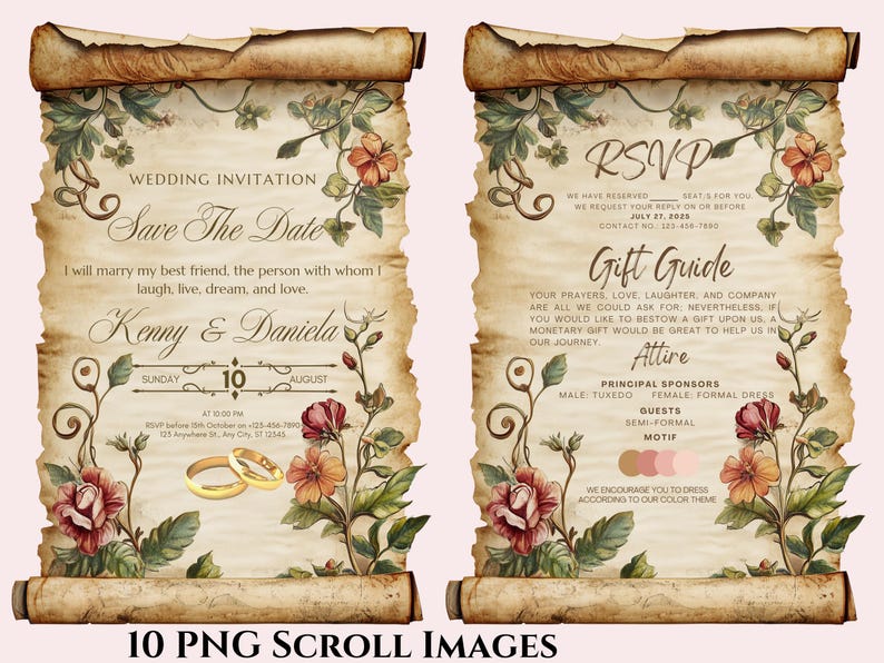 Custom Print Handmade Vintage Wedding Scroll Invitation