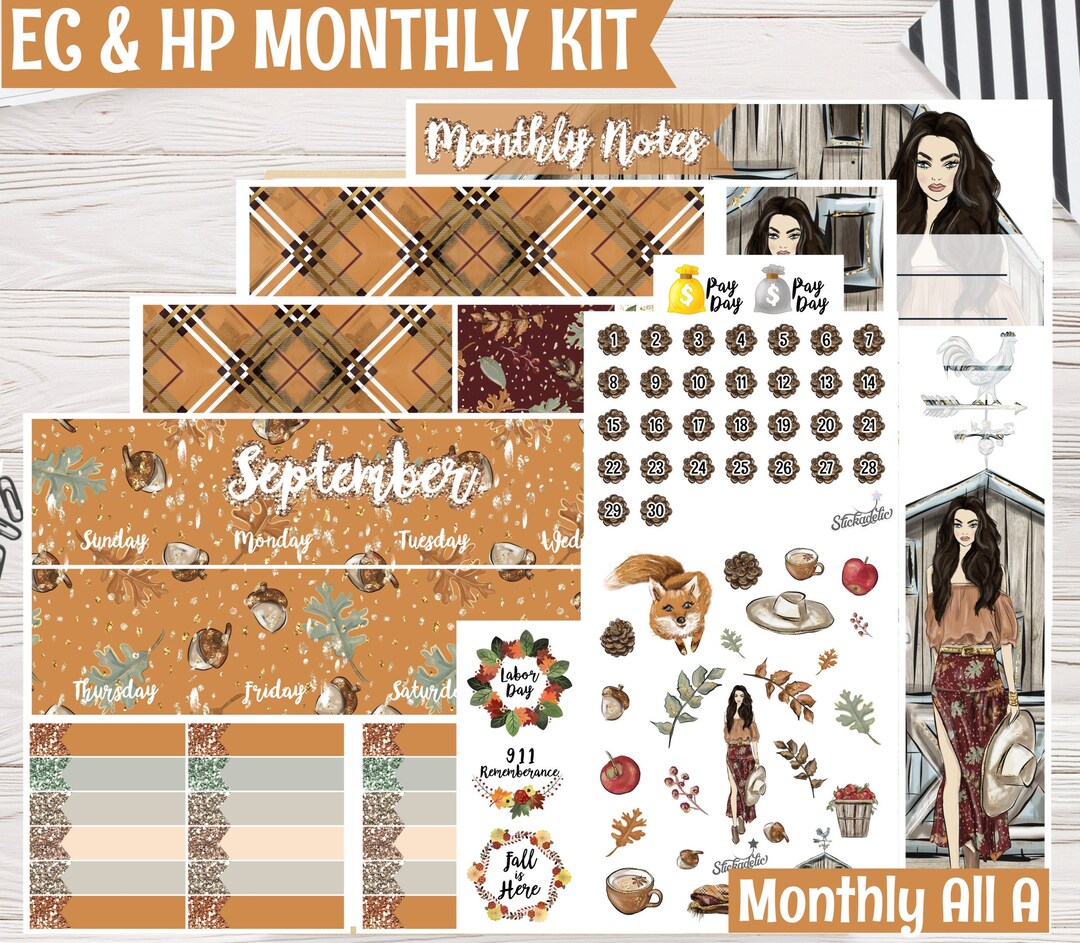 Rustic September Monthly Kit | Monthly Planner Stickers for Erin ...