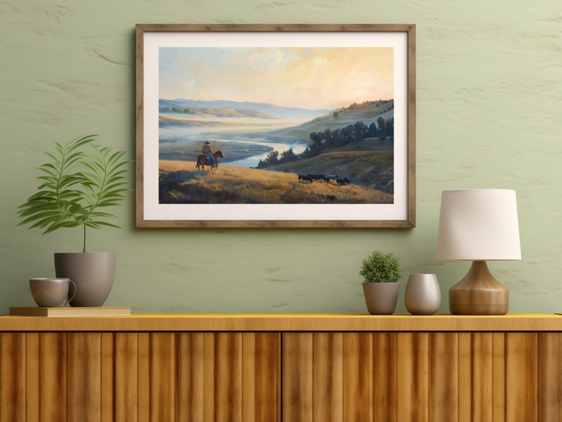 Rustic Cowboy Sunrise Scenery Print, Western Landscape Wall Art Cowboy ...
