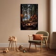 Cozy Cabin Campfire Rustic Lakehouse Forest String Lights Scene poster ...