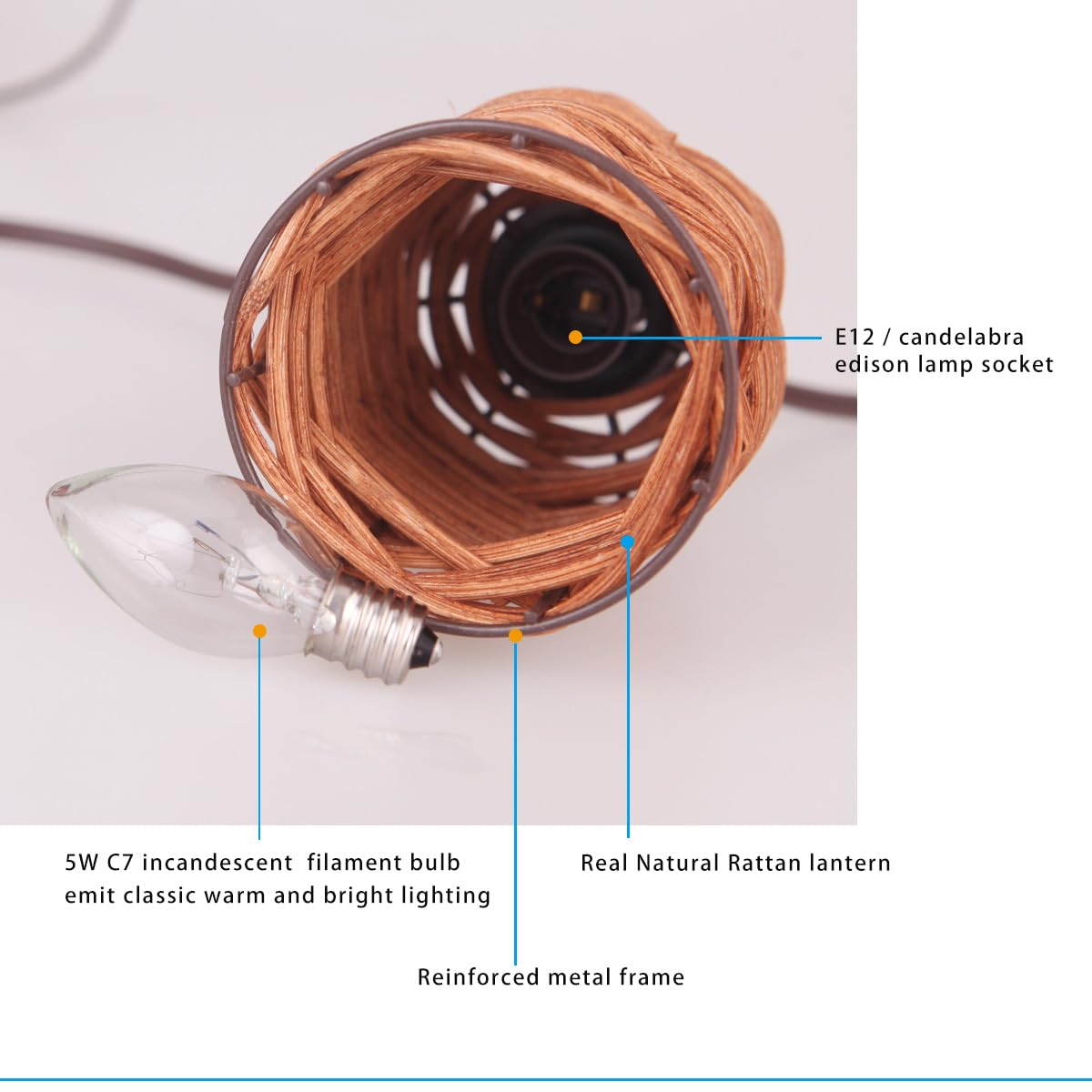 Snapklik.com : Natural Rattan String Lights, 10 Rustic Raffia Cage,13 ...