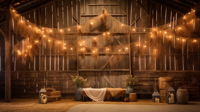 A rustic barn wedding with string lights and wooden decor | Premium AI ...