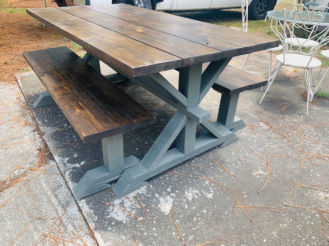 Rustic 7ft Farmhouse Table with Benches, Dining Set, Table Set, Early ...