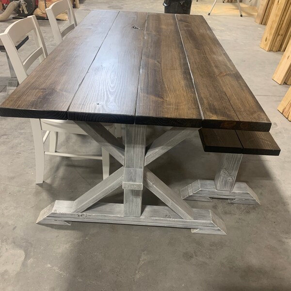 Handmade Rustic Farmhouse Dining Table Set: Brownish Gray Top ...