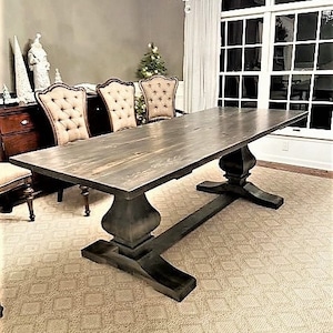 Rustic 6ft long pedestal farmhouse table with black chairs etsy – Artofit