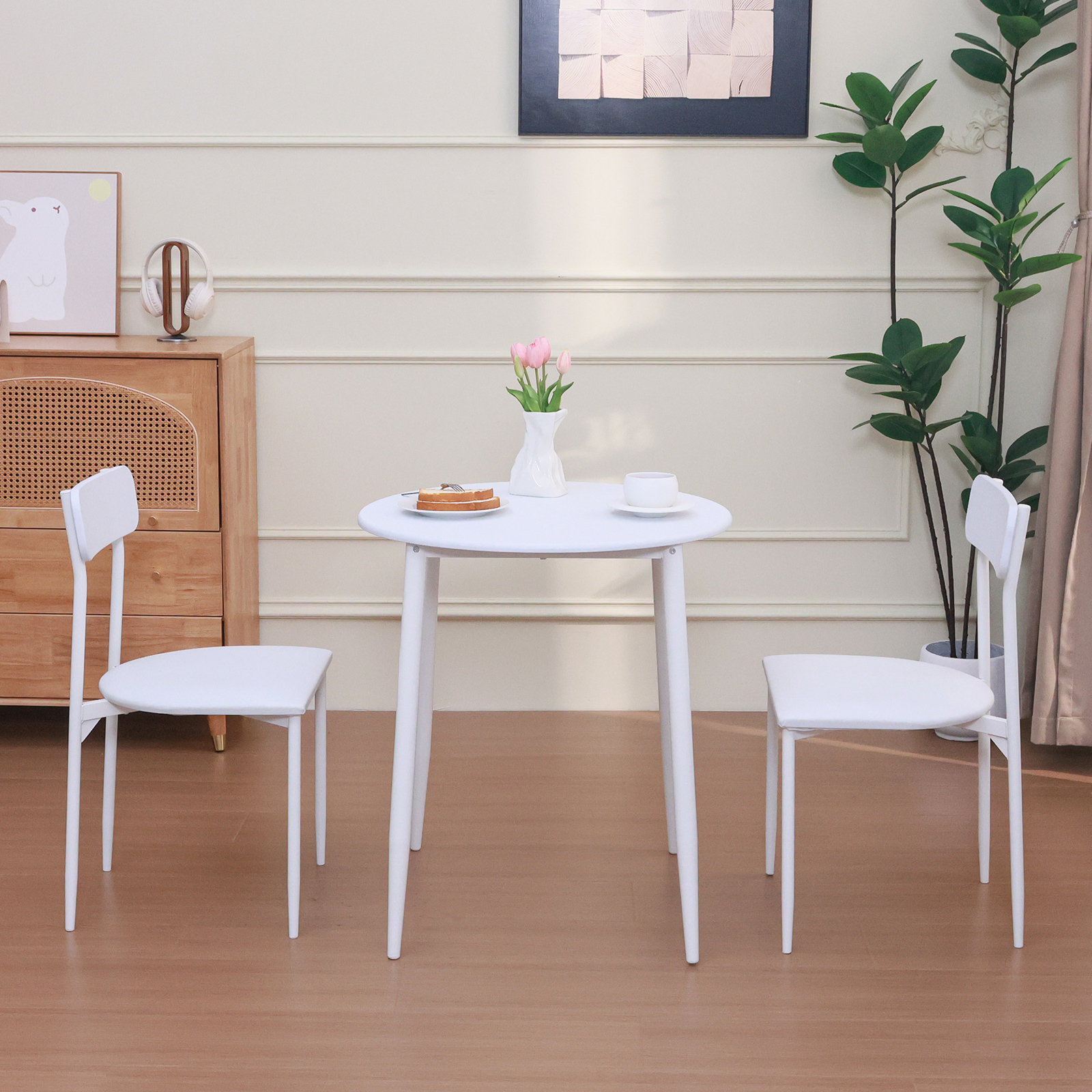 George Oliver Rustic Brown Round Dining Table Set For 2, Modern Small ...