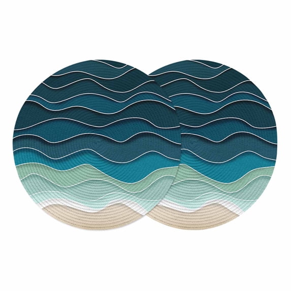 Blue Waves Round 15 Inch Placemats Set of 2, Rustic Abstract Beach ...