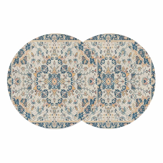 Boho Orange Blue Round 13 Inch Placemats Set of 2, Southwestern Ethnic ...