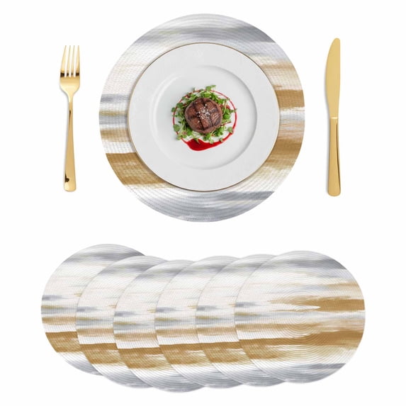 Brown Gray White Round 13 Inch Placemats Set of 6, Vintage Rustic ...