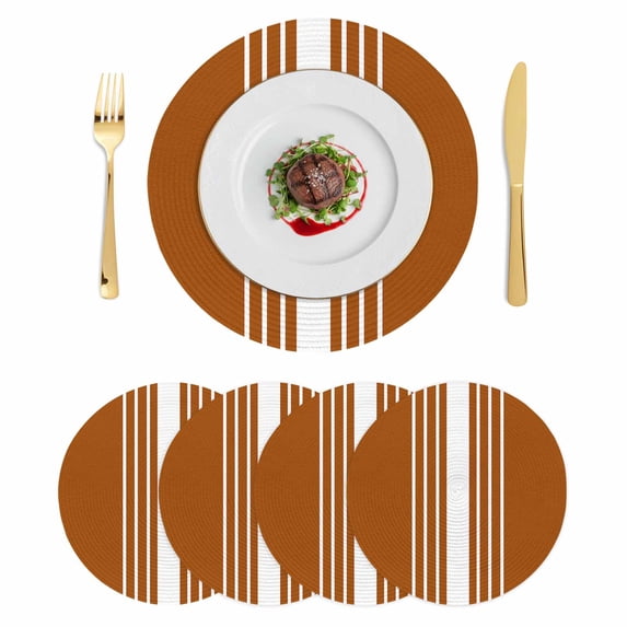 Burnt Orange White Stripe Round 13 Inch Placemats Set of 4, Modern ...