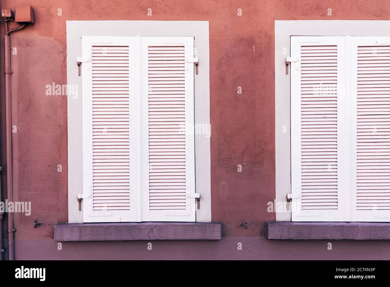 Colorful symmetric rustic windows Stock Photo - Alamy