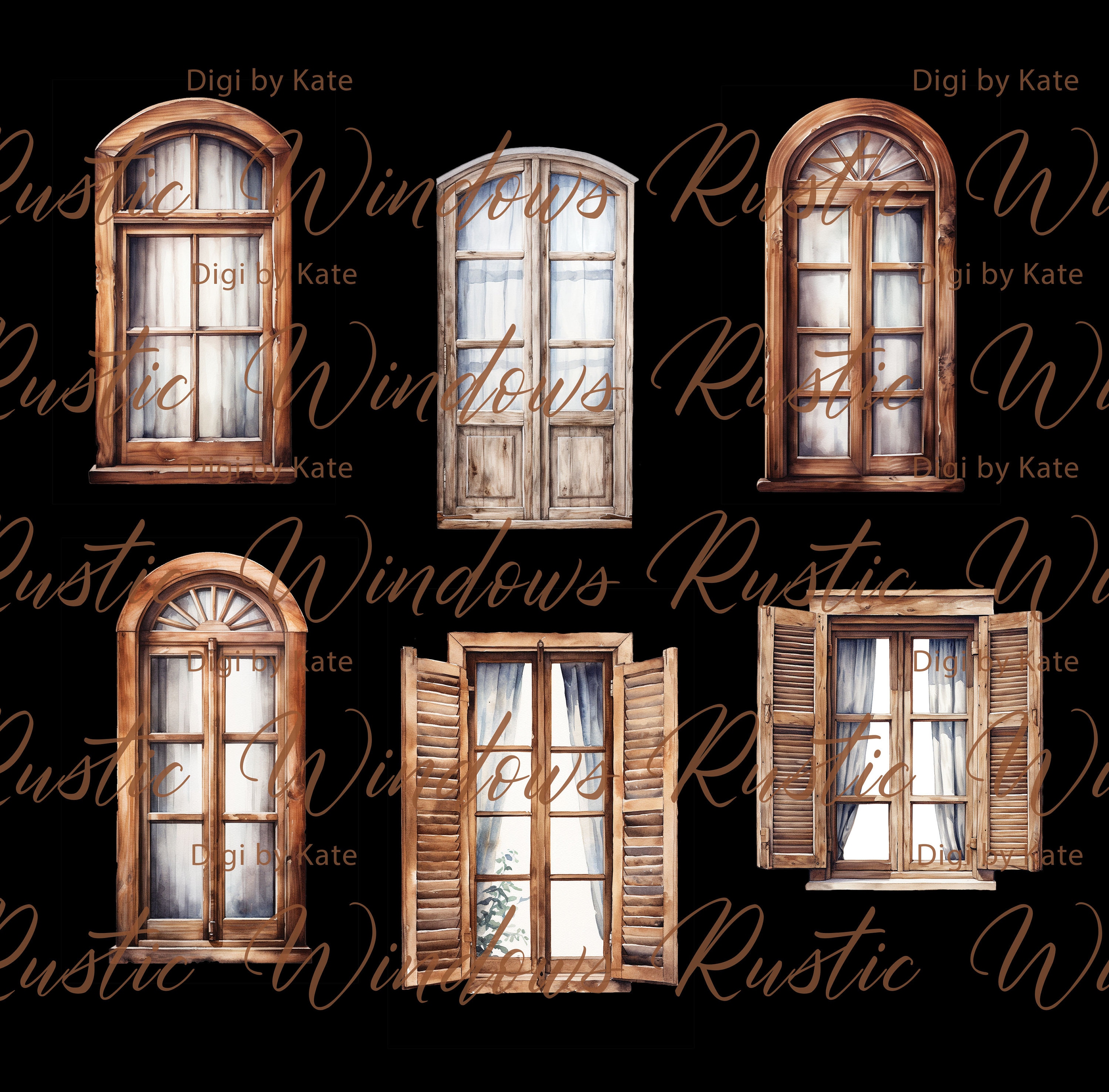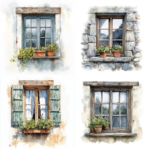 20 Rustic Window Watercolor Clipart JPG, Digital Download, Junk ...