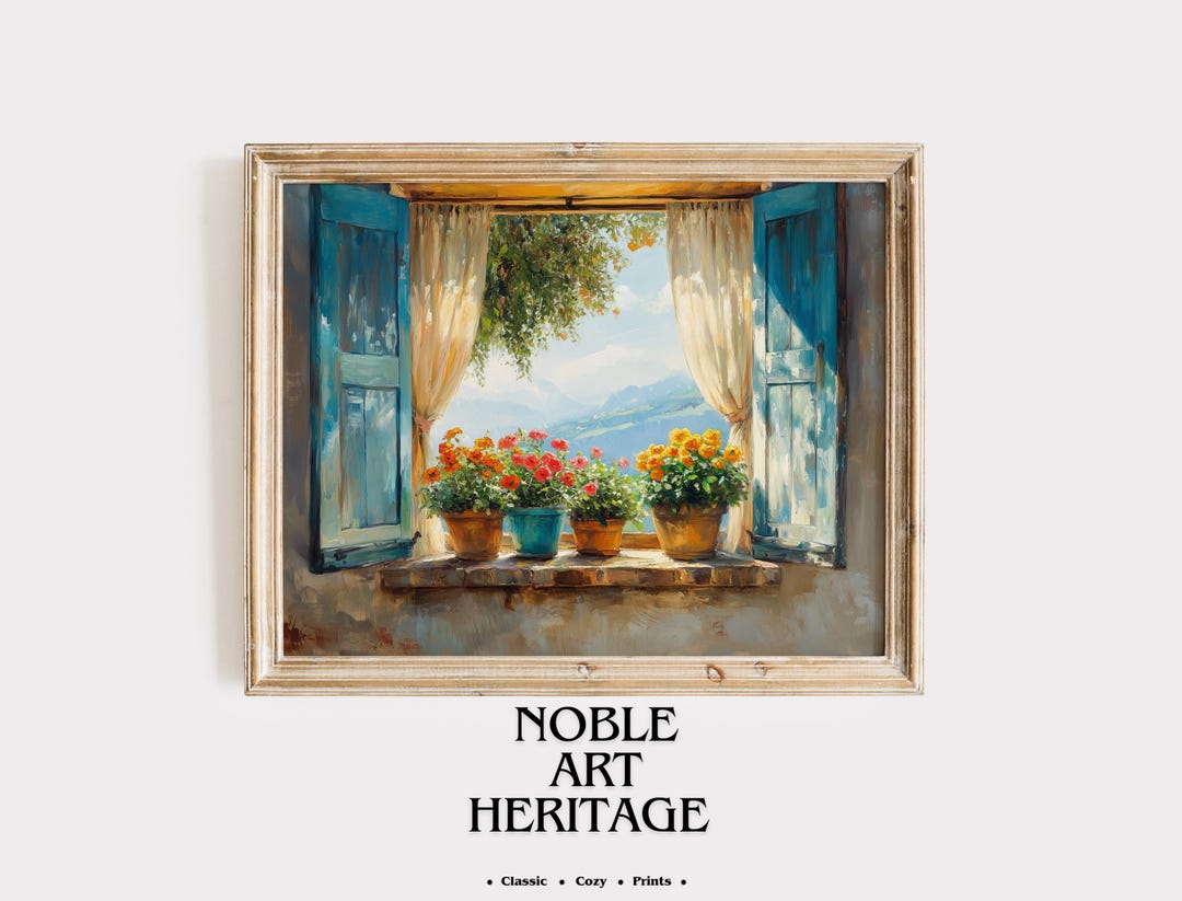 Printable Cottage Window Art, Rustic Countryside Decor, Open Shutters ...