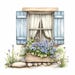 Rustic Window Flowers Watercolor Illustration Isolated Stock ...