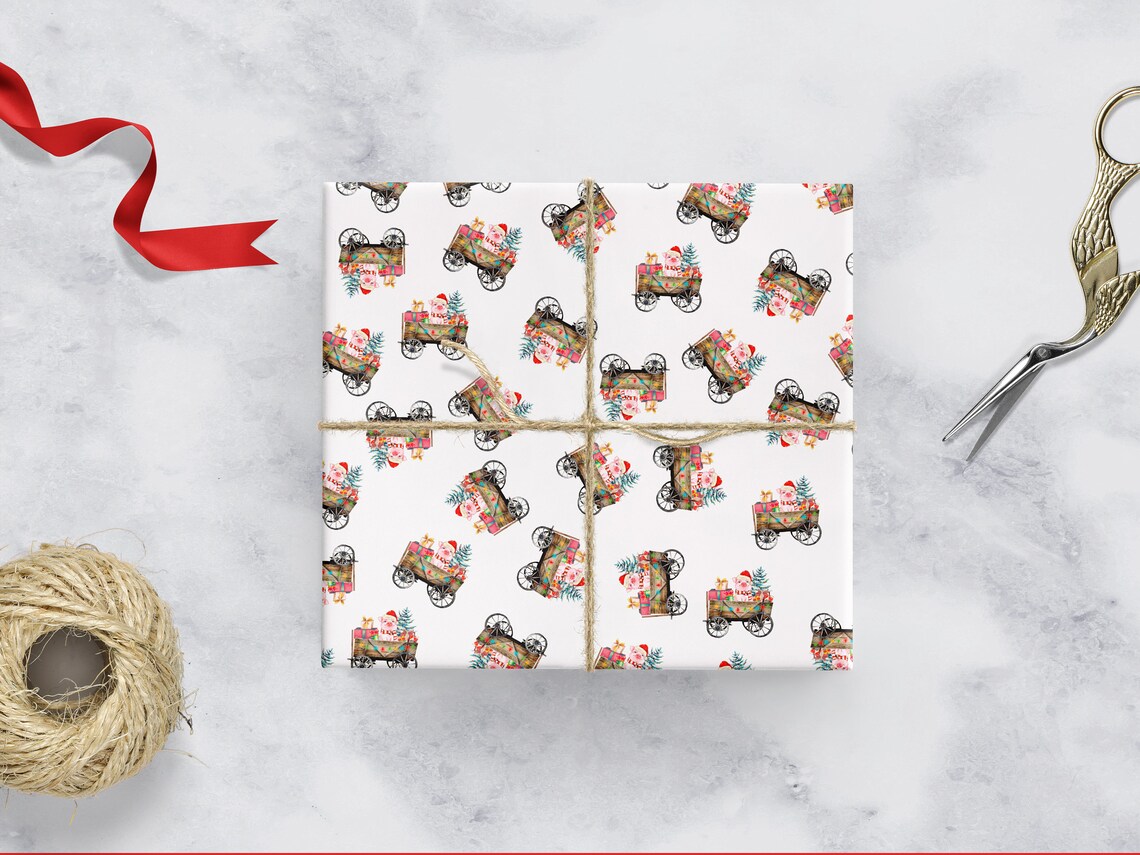 Santa Pig Wagon Rustic Wrapping Paper 29x20 | Etsy