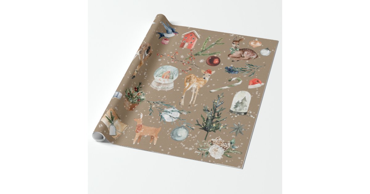 Rustic Kraft Winter Holiday Gift-Giving Animals Wrapping Paper Sheets ...
