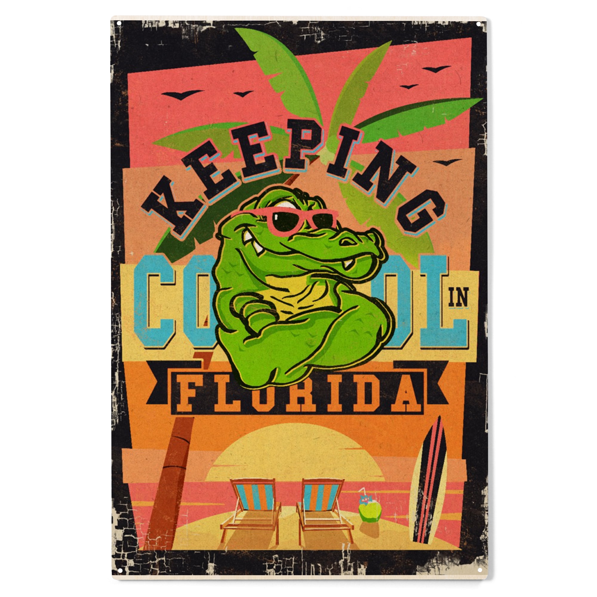 Keeping Cool in Florida, Alligator, Vintage Mascot Birch Wood Wall Sign ...