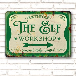 Elf Sign, Distressed Elf Workshop Sign, Old Look Metal Rusty Look ...