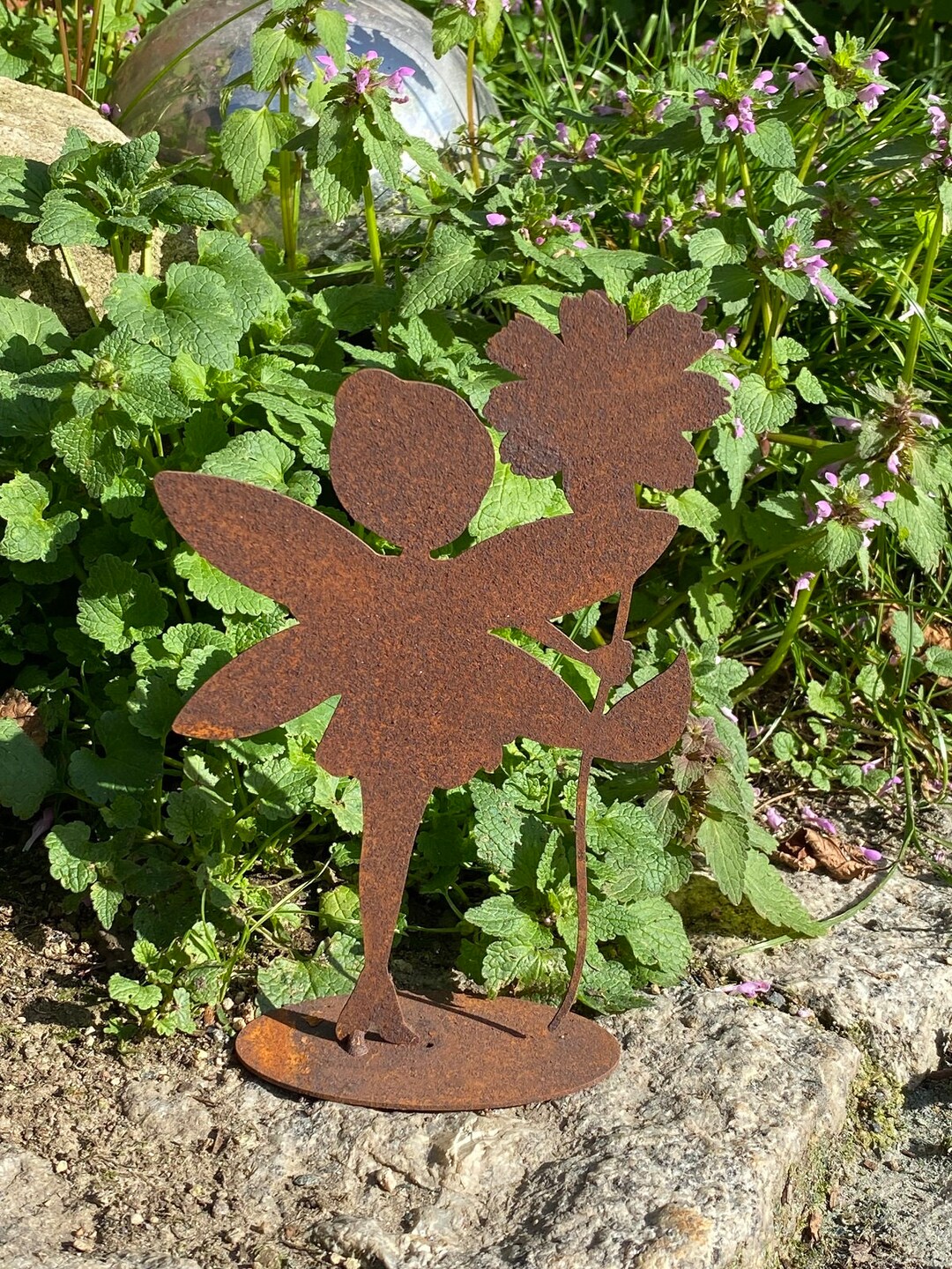 Cast Iron Flower Elf Lina, Patina Finish Garden Decoration Rust Metal ...