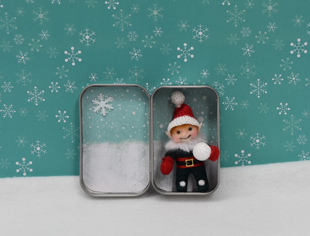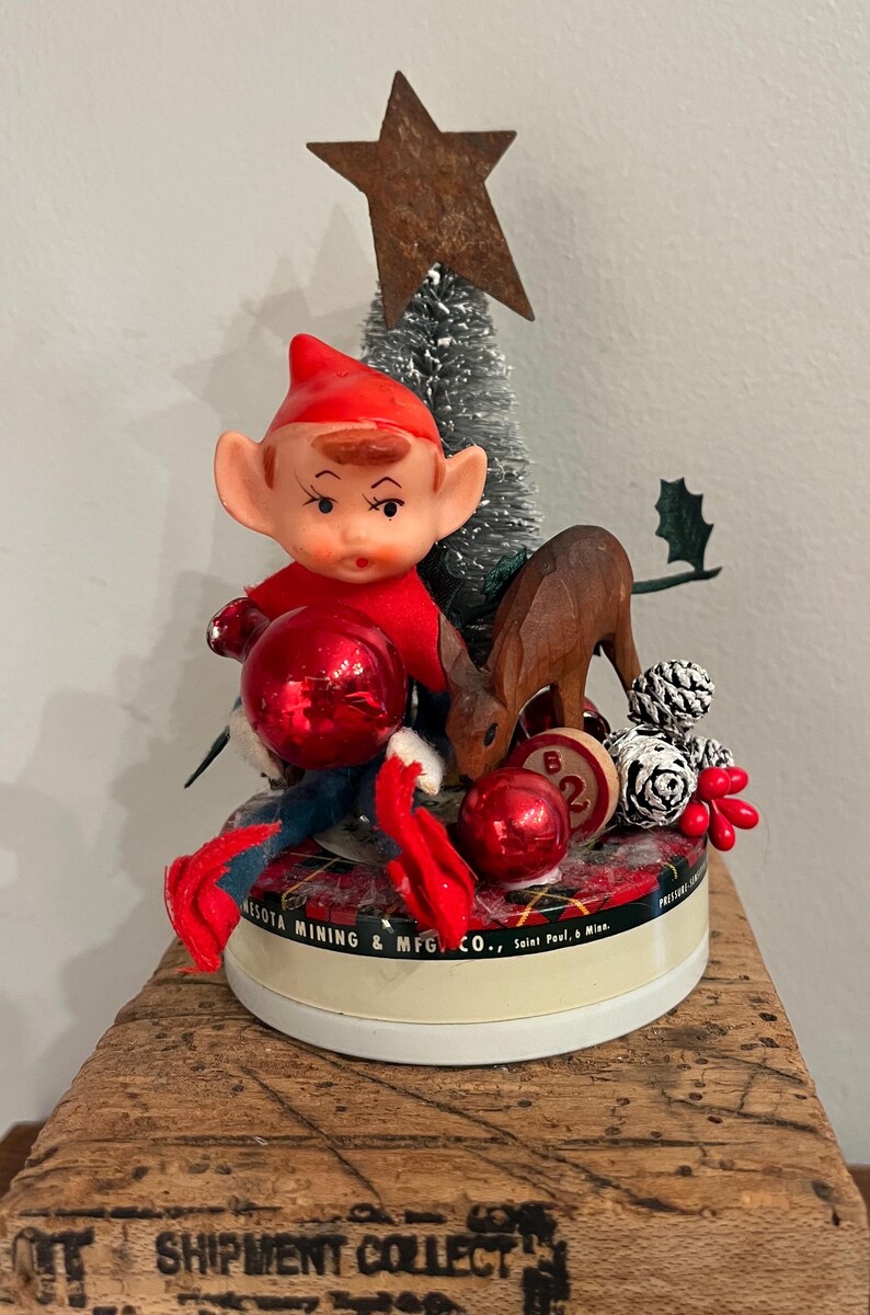 Vintage Elf on Plaid Scotch Tape Tin, Christmas Assemblage Decor Gift ...