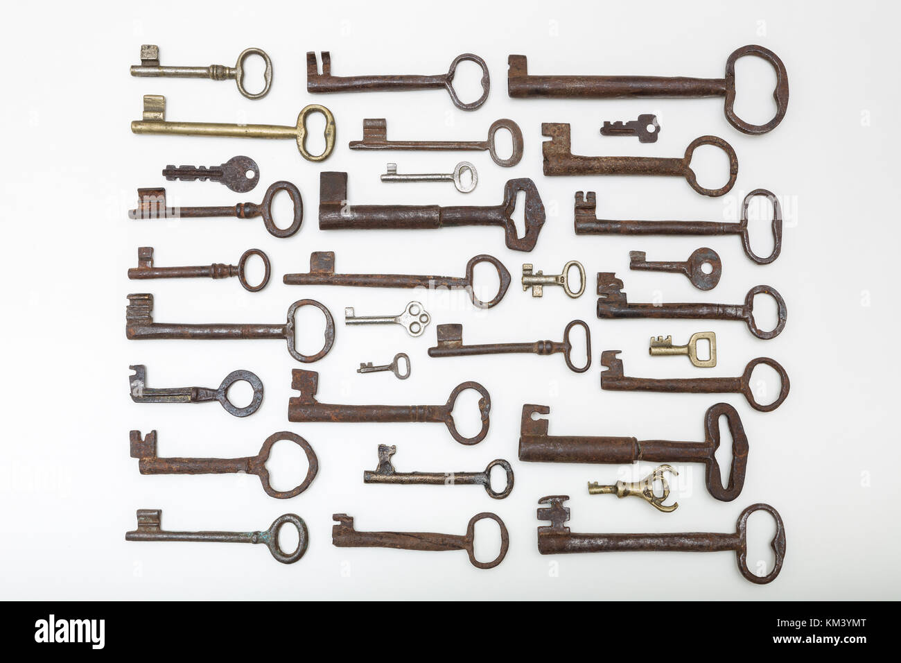 set of old rusty keys isolated on white background Stock Photo - Alamy