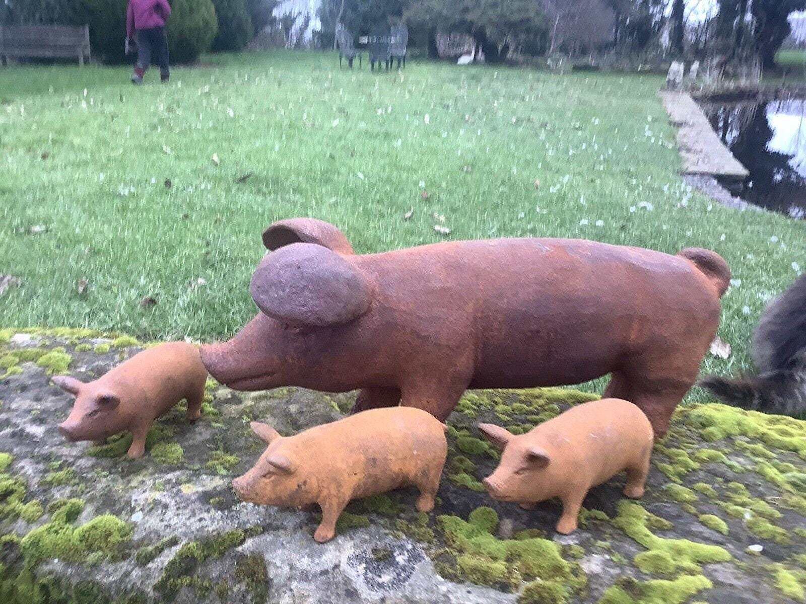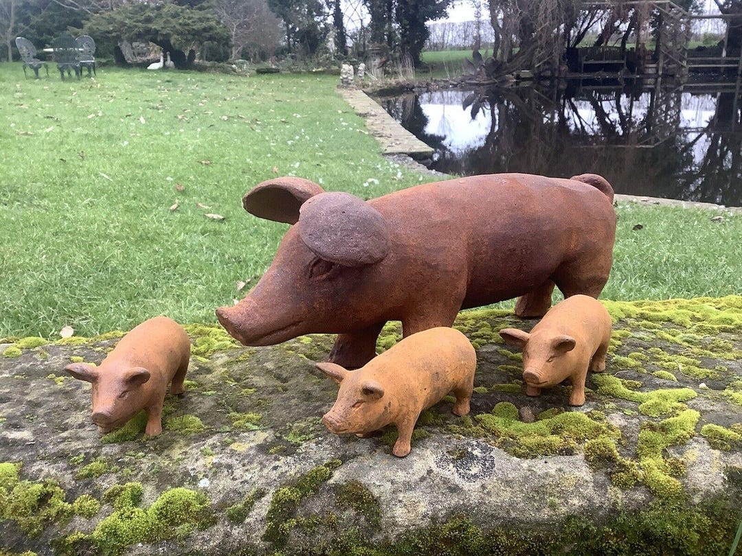 Set of 4 Metal Rusty Cast Iron Pig / Piglet Garden Ornaments - Etsy UK