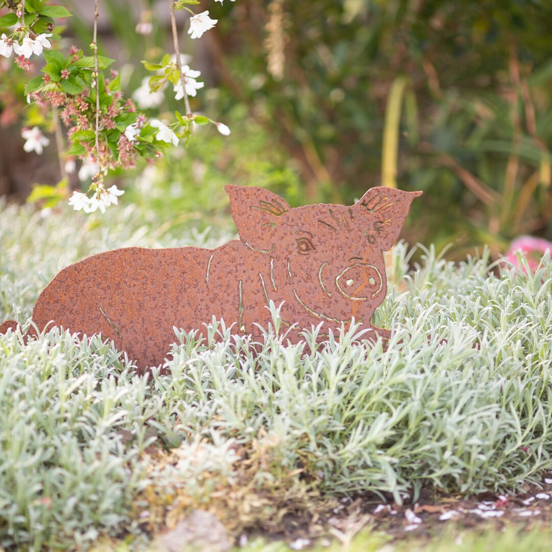 Rusty Pig Garden Decor / Little Piggy Garden Ornament / Garden - Etsy