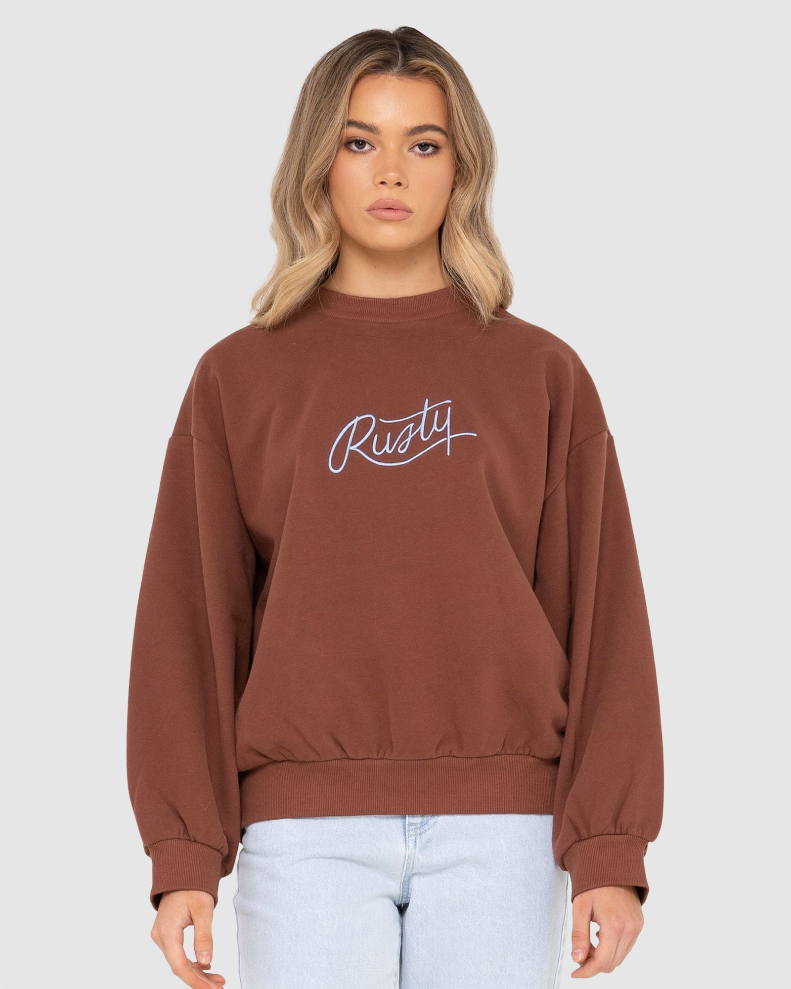Buy WOMENS RUSTY SCRIPT OVERSIZE CREW NECK FLEECE by Rusty | Surf Dive ...