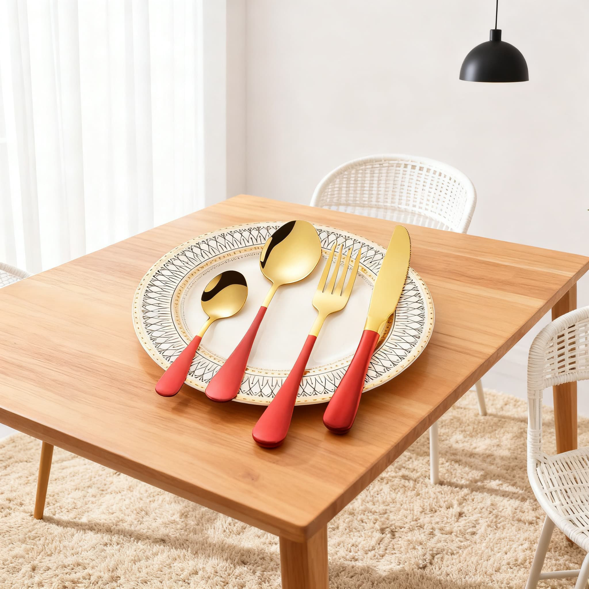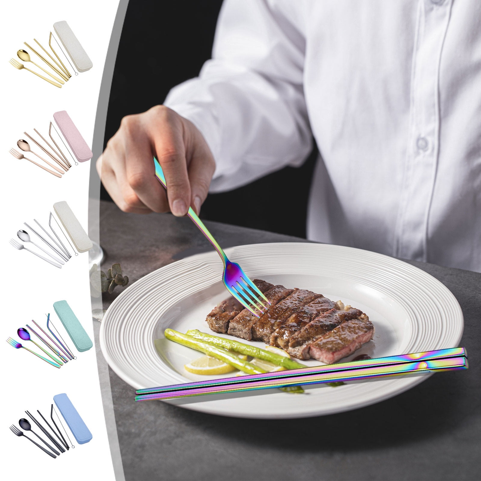 Viflosae Flatware Set Titanium Coated 6 Piece Combo with fork Spoon ...