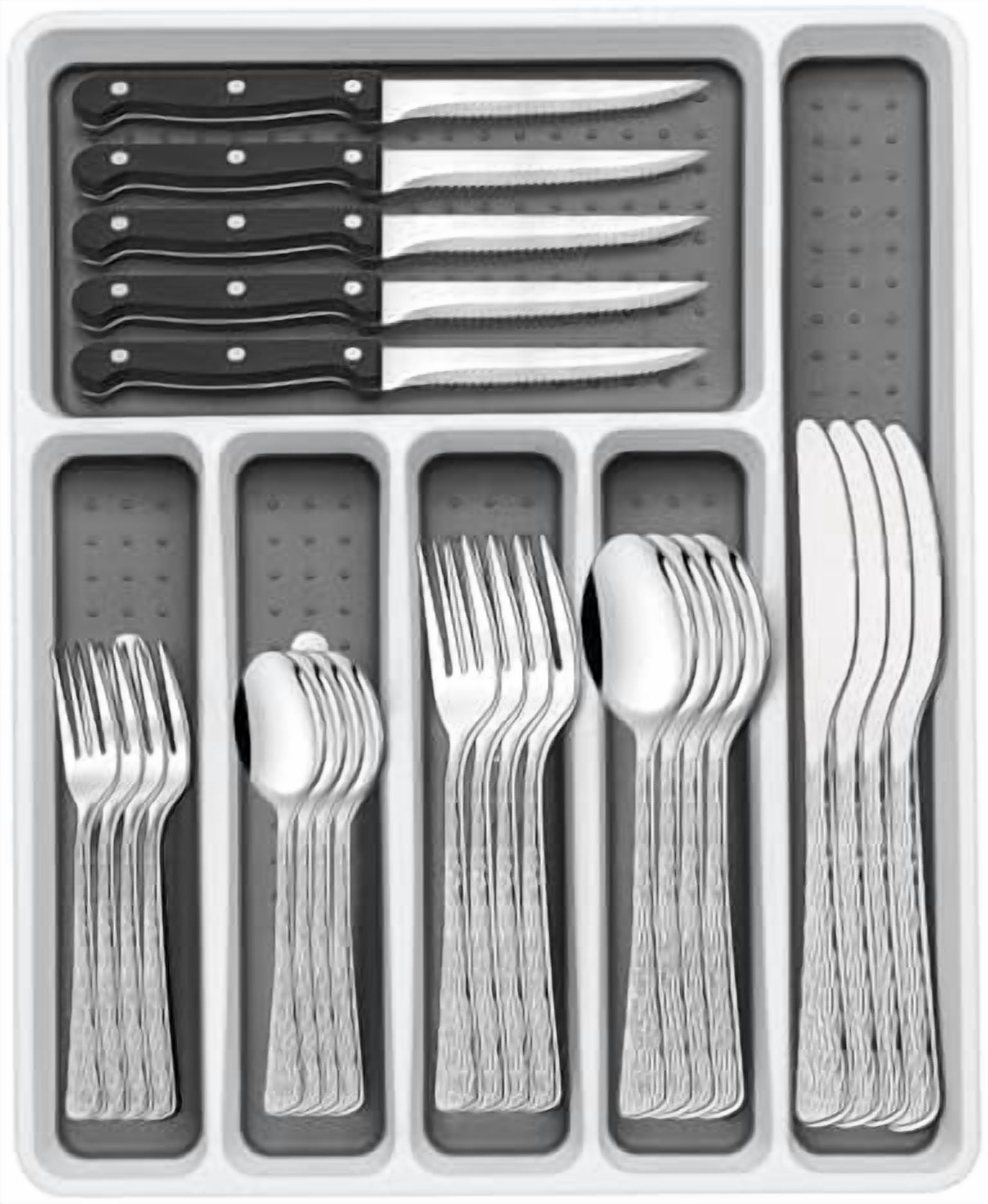 49-Piece Silverware Set with Organizer, Food-Grade Stainless Steel ...