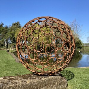 Metal Rusty Garden Modern Art Open Sphere Orb Sculpture - Etsy UK