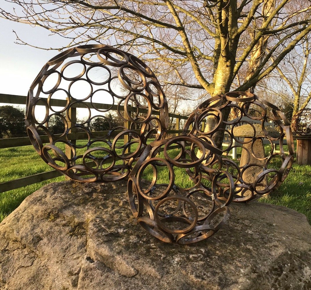 SET OF 3 METAL GARDEN OPEN RUSTY SPHERES STEEL ORBS SCULPTURES – Ferney ...
