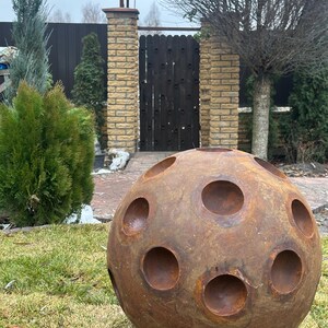 Rusty Metal Ball Sculpture, 20'' Diameter, Garden Art Sphere, Handmade ...