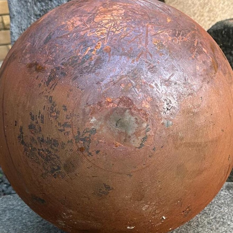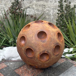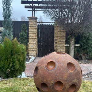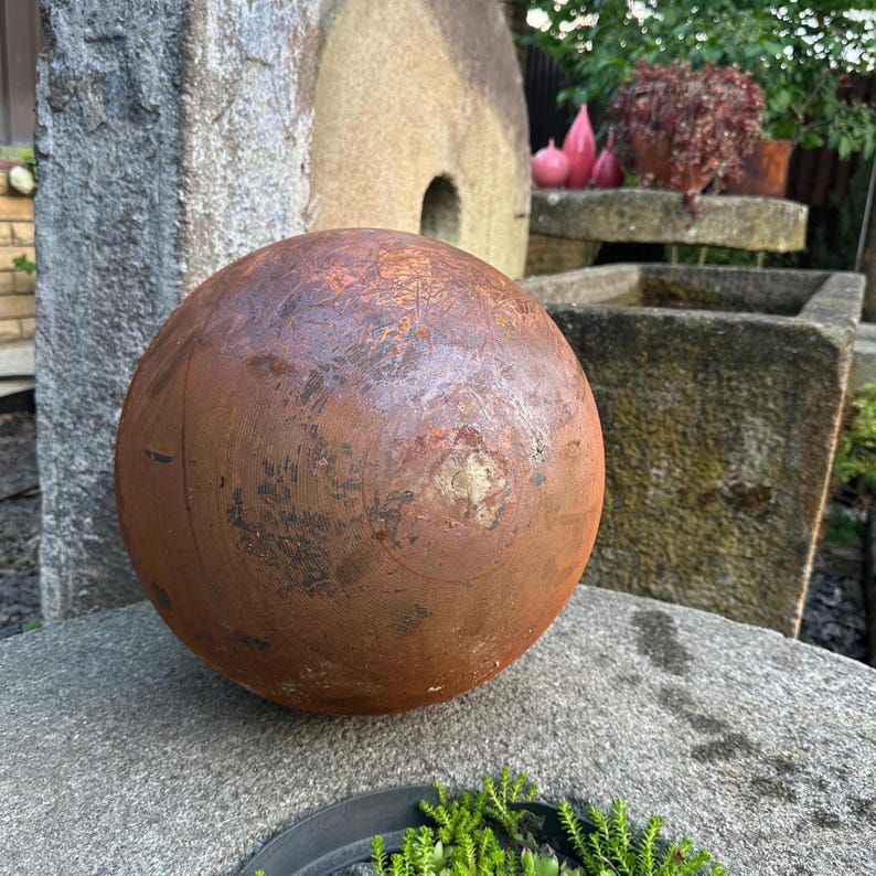14" Rusty Metal Garden Sphere: Weathered Steel Outdoor Sculpture - Etsy