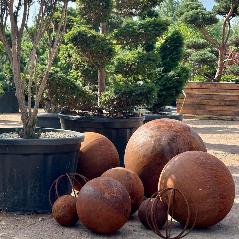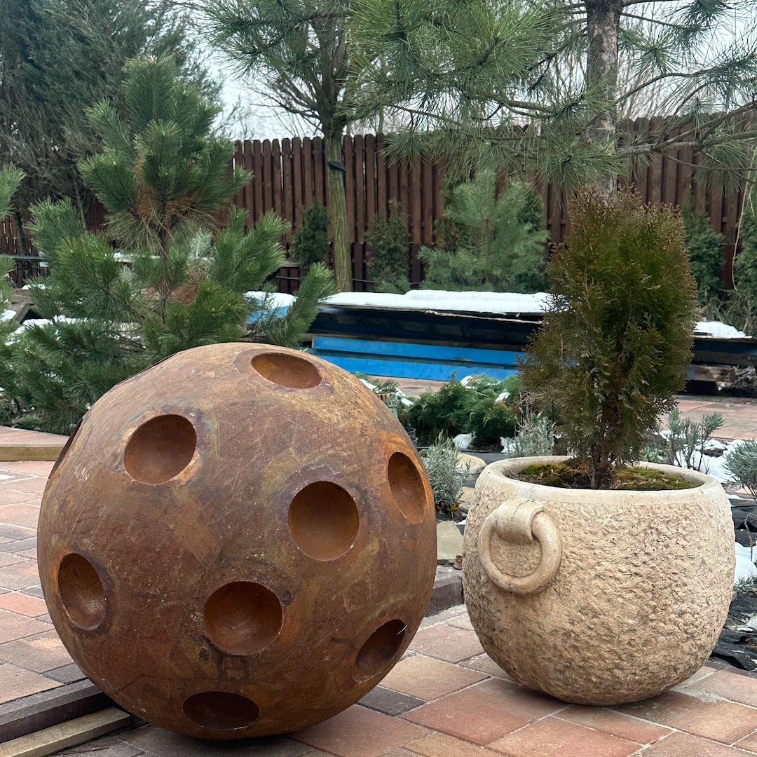 Rusty Steel Garden Sphere – 2 Types, Decorative Rustic Ball, Outdoor ...