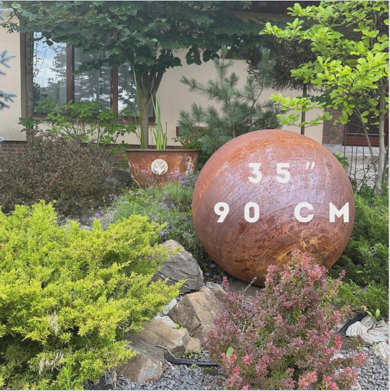 Big 27” Rusty Metal Sphere Outdoor Garden Decor - Zen Garden Globe Scu ...