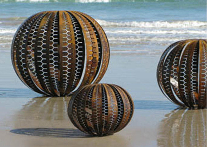 Balls Type Outdoor Corten Steel Garden Sculpture , Rusty Sphere Sculpture